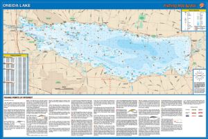Oneida Lake, New York Waterproof Map (Fishing Hot Spots)One of the most intensively studied and managed lakes in the nation. Widely acknowledged as the premier walleye lake in the Northeast. Smallmouth fishing is fantastic. Good numbers of perch, crappie bluegill and bullhead. These new S-Series maps feature GPS-Marked Fishing Areas, shaded contours, and enhanced graphics. This map features Shaded Depth Contours, GPS Coordinates for Marked Fishing Areas and enhanced species information (including color pictures). It also highlights underwater structures and boat ramps, and includes a lake profile, fishery information, tips and techniques, and the best digitally-produced cartography on the market. This series is the new Gold Standard in fishing maps and is available for select New York lakes. Size - 24 X 36 $16.45